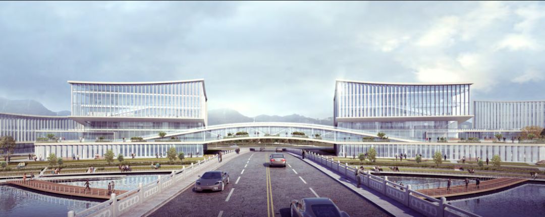 項(xiàng)目由四個(gè)功能獨(dú)立的建筑單體通過二層連廊緊密銜接在一起,形成一個(gè)功能齊聚的建筑主體。外立面設(shè)計(jì)靈感來自于風(fēng)琴的琴鍵、豎琴的琴弦等樂器的豎向線條及溫州的山水,營(yíng)造浪漫靈動(dòng)的建筑特征。通過打造下沉式廣場(chǎng),使得主體建筑形體造型設(shè)計(jì)以及周邊綠化布局,完美呼應(yīng)地塊周邊優(yōu)美的山水環(huán)境,整體造型舒展蜿蜒,順應(yīng)城市格局棲于水岸。