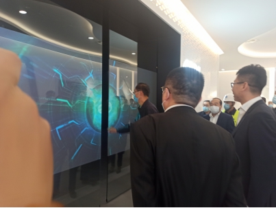 隨后,韓金峰一行來到中地塊M7#樓京東云展廳內(nèi)部,聽取了京東代表的詳細介紹,并切身體驗了引入的“黑科技”技術(shù),韓金峰親手觸碰數(shù)字經(jīng)濟產(chǎn)業(yè)數(shù)控之門,通過數(shù)字大屏對先行區(qū)建設(shè)情況與規(guī)劃進行了了解。2018年9月,京東集團與先行區(qū)達成全面戰(zhàn)略合作,依托戰(zhàn)略資源助力山東傳統(tǒng)產(chǎn)業(yè)升級,助力新舊動能轉(zhuǎn)換。