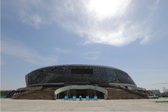 目前冰籃球館項(xiàng)目全面進(jìn)入裝飾裝修階段,其中室外玻璃幕墻及金屬屋面施工基本結(jié)束,室內(nèi)精裝修施工已全面展開,室外園林正進(jìn)行鋪裝基層硬化工作。