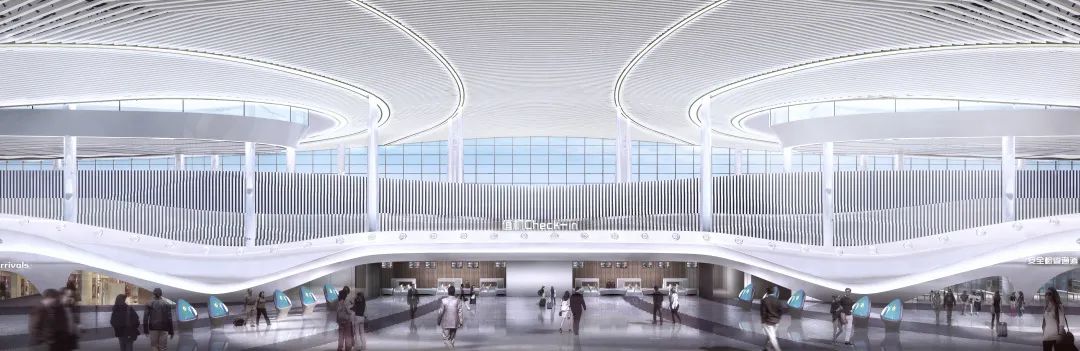 航站樓的設(shè)計(jì)理念汲取當(dāng)?shù)厣詈竦娜寮椅幕c獨(dú)有的運(yùn)河文化航站樓屋面造型初見,如璞玉般明潤(rùn)和諧,又如祥云般蒸騰而升。項(xiàng)目從“祥云璞玉”的儒圣精神著手,暗合“君子如玉”的儒家精神,屋檐走勢(shì)如水,波浪起伏,象征著運(yùn)河文化帶來(lái)的流暢與鮮活,將古建筑“重檐屋頂、斗拱、柱列”的特點(diǎn),與現(xiàn)代機(jī)場(chǎng)建設(shè)相結(jié)合,典雅溫潤(rùn),渾然天成。室內(nèi)以“大成飛檐、河映孔孟”為主題,氛圍儒雅詩(shī)意,吊頂順應(yīng)天窗形式,展現(xiàn)出運(yùn)河融南匯北的壯美畫卷,運(yùn)河之都,名副其實(shí),打造濟(jì)寧獨(dú)特的儒家文化名片。