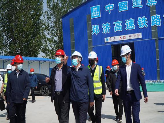 4月16日,山東鐵投集團(tuán)黨委書(shū)記、董事長(zhǎng)姜長(zhǎng)興赴中建八局鄭濟(jì)高鐵項(xiàng)目調(diào)研,對(duì)項(xiàng)目防疫復(fù)工、大臨建設(shè)及征地拆遷等情況進(jìn)行指導(dǎo)。