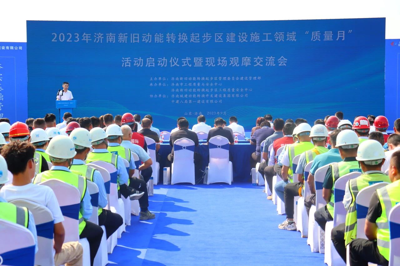 9月8日,2023年濟(jì)南新舊動(dòng)能轉(zhuǎn)換起步區(qū)建設(shè)施工領(lǐng)域“質(zhì)量月”活動(dòng)啟動(dòng)儀式暨現(xiàn)場(chǎng)觀摩交流會(huì)在中建八局一公司承建的黃河體育中心專(zhuān)業(yè)足球場(chǎng)項(xiàng)目舉行。