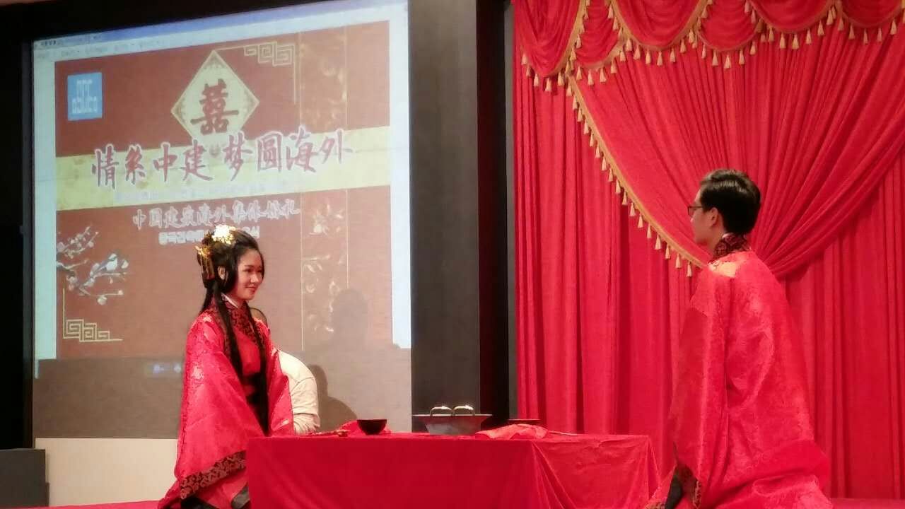11點18分,婚禮儀式正式開始。在新人登場前,各界來賓共同觀看了公司“豐碑”宣傳片。隨后,具有中國特色的中式婚禮大典正式拉開序幕。在溫馨浪漫的音樂聲中,六對新人通過不同的服裝來展現(xiàn)不同特色的中式婚禮,分為漢式新人、唐裝新人、秀禾新人三幅篇章。別具一格的精彩呈現(xiàn),展現(xiàn)中國傳統(tǒng)文化博大精深,源遠流長,在座賓客無不拍手稱贊。在主婚、證婚、送祝福的環(huán)節(jié)中,主婚人馮春臺以對聯(lián)的形式祝愿新人開啟新生活、新天地;證婚人王有標代表公司董事長、黨委書記李永明,總經(jīng)理、黨委副書記董文祥為六對新人送上美好祝福,同時感謝各位來賓的對本次活動的支持,也祝愿海外事業(yè)部蓬勃發(fā)展;哈小平美好祝福的同時為新人們送來神秘禮物―“濟州五日游”;國會議員金太石引用詩句祝福六對新人永遠幸福,表示被今天華麗的中國式婚禮所震撼、感動;綠地韓國公司社長姜敏揮祝愿所有新人生活美滿幸福、白頭偕老,永結(jié)同心,也表示雖然在中國居住8年,但像今天如此盛大的婚禮還是第一次,為之感動震撼。
