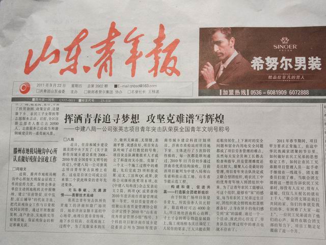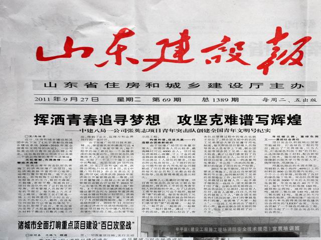 自公司張英志項目青年突擊隊榮獲“全國青年文明號”榮譽(yù)稱號以來,山東建設(shè)報、山東青年報等媒體相繼報道該突擊隊事跡。