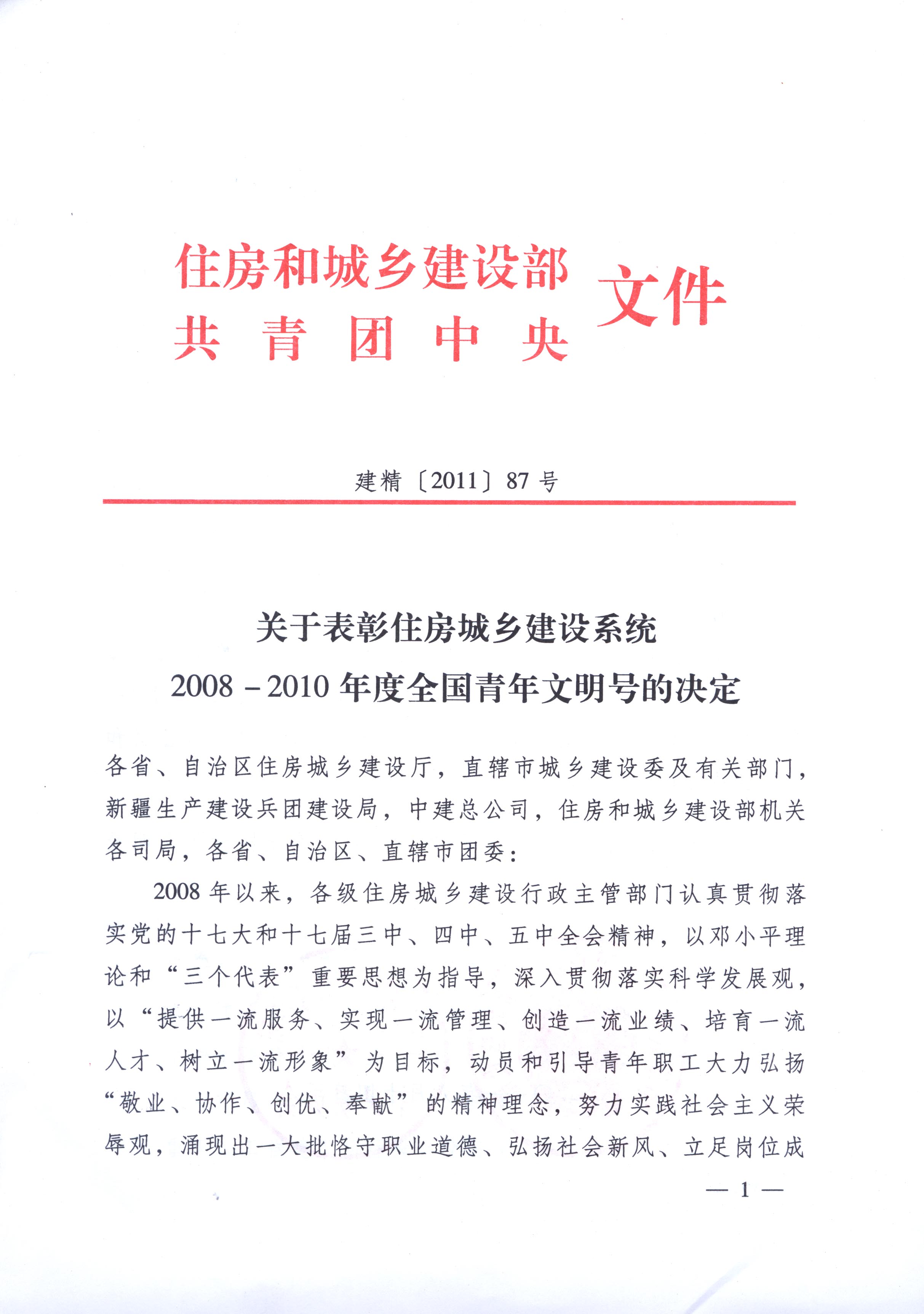 近日,住房和城鄉(xiāng)建設(shè)部及團(tuán)中央下發(fā)了《關(guān)于表彰住房城鄉(xiāng)建設(shè)系統(tǒng)2008-2010年度全國青年文明號的決定》,公司張英志項目青年突擊隊榜上有名。這也是自該公司成立以來第二個獲此殊榮的青年先進(jìn)集體。