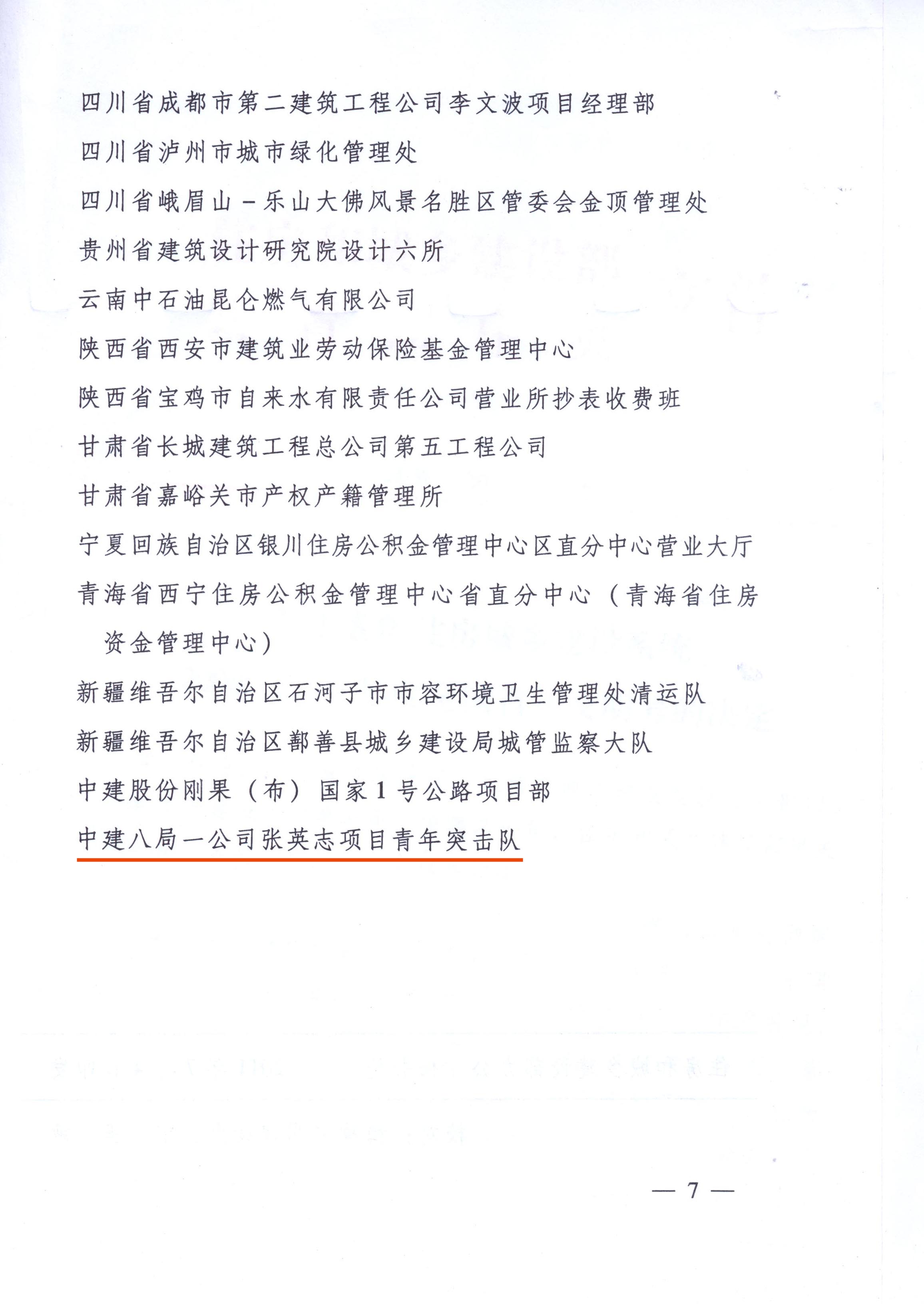 ――張英志項目青年突擊隊榮獲全國青年文明號稱號