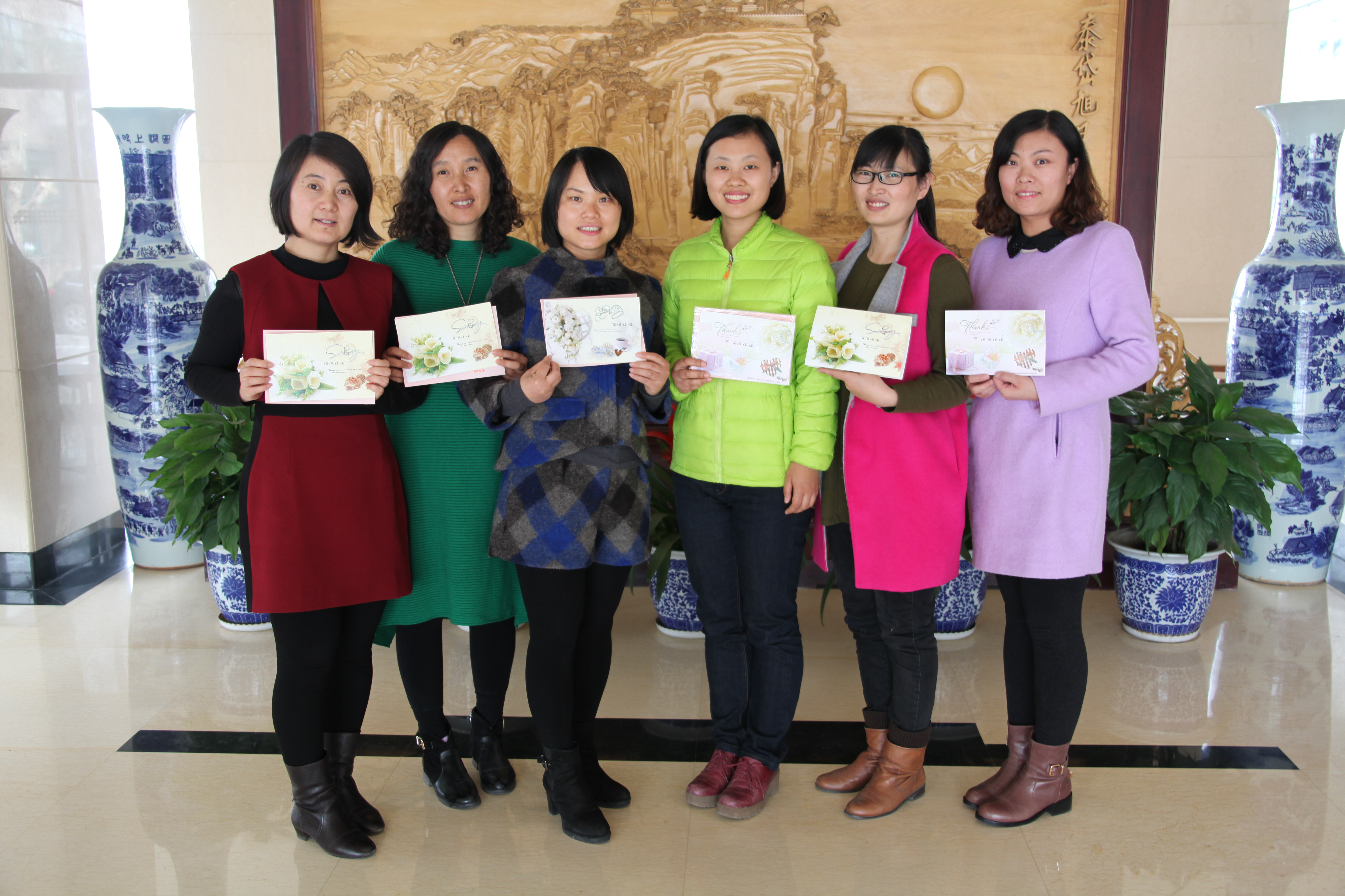 一份賀卡,一份祝福 “哇!今年還有手寫的賀卡?。 ?,女職工發(fā)出的感嘆道出了今年“38節(jié)”活動(dòng)的與眾不同。為使“38節(jié)”活動(dòng)過得更有意義,機(jī)關(guān)工會(huì)早在節(jié)前就邀請一公司領(lǐng)導(dǎo)、部門經(jīng)理在賀卡上為各自分管/直管部門女職工寫下節(jié)日祝福,對她們一年來的努力與付出表示感謝,并祝愿她們在新的一年里身體健康,工作順利!