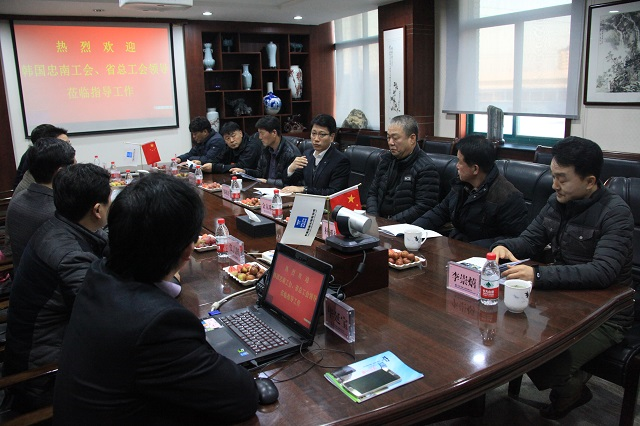 王有標在歡迎詞中對韓國忠南工會一行領導的蒞臨表示熱烈歡迎。雙方共同觀看了公司宣傳片《豐碑》。畢延寶從構建“民主之家”、“安康之家”、“文娛之家”、“溫暖之家”、“責任之家”、“和諧之家”六個方面對公司工會工作進行了簡要匯報。