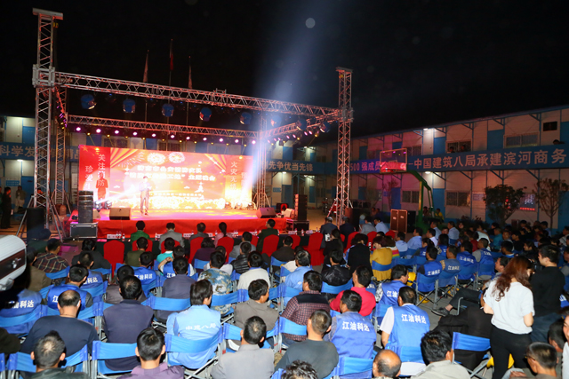 4月24日晚,濟(jì)南濱河商務(wù)中心項(xiàng)目工地現(xiàn)場歌聲嘹亮、氣氛熱烈,由公司和濟(jì)南市公安消防支隊(duì)聯(lián)合舉辦的“消防安全進(jìn)工地”主題晚會(huì)在這里隆重舉行。濟(jì)南市公安消防支隊(duì)政委張才坤、濟(jì)南濱河新區(qū)建設(shè)投資集團(tuán)董事長宋衛(wèi)東、濟(jì)南濱河新區(qū)建設(shè)投資集團(tuán)副總經(jīng)理許為民、山東眾成建設(shè)項(xiàng)目管理有限公司副總經(jīng)理顏廷鈞、山東省總工會(huì)文體協(xié)會(huì)秘書長鄭家利、公司董事長李永明、黨委書記許紅、黨委副書記董文祥以及業(yè)主、監(jiān)理、項(xiàng)目管理人員、農(nóng)民工等三百余人觀看了演出。