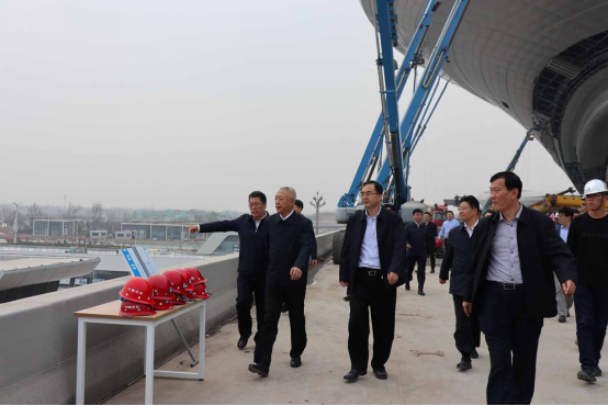 10月23日,山東省副省長凌文、臨沂市委書記王玉君、市長孟慶斌、魯南高速鐵路有限公司董事長王基全一行到魯南高鐵站房項目臨沂北站調研指導。