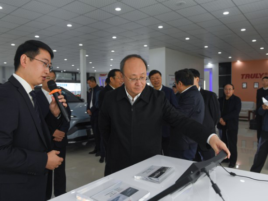 尹力一行首先在現(xiàn)場指揮部觀看了項目宣傳視頻,了解了項目的整體概況。隨后,一行人察看了燈箱片、沙盤以及信利產(chǎn)品應(yīng)用展示,聽取了項目規(guī)劃建設(shè)情況和產(chǎn)品情況的匯報。尹力表示:信利項目全面投產(chǎn)后對引進電子信息上下游配套企業(yè),延伸產(chǎn)業(yè)鏈條,打造良好產(chǎn)業(yè)生態(tài)具有重要的帶動作用,他要求企業(yè)注重節(jié)約利用土地資源,持續(xù)提高投資強度和產(chǎn)出效益。