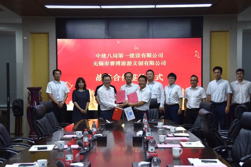 7月16日下午,中建八局第一建設(shè)有限公司與無(wú)錫市賽博旅游文創(chuàng)有限公司簽署戰(zhàn)略合作協(xié)議。無(wú)錫市賽博旅游文創(chuàng)有限公司董事長(zhǎng)徐忠明一行4人,公司副總經(jīng)理王有標(biāo),市場(chǎng)客戶(hù)部副經(jīng)理蔡永飛,設(shè)計(jì)研究院書(shū)記、院長(zhǎng)王良超,副院長(zhǎng)鄧波等出席儀式。