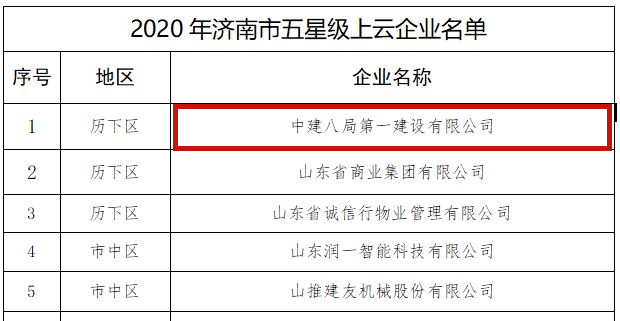 中建八一入選2020年濟(jì)南市五星級(jí)上云企業(yè)