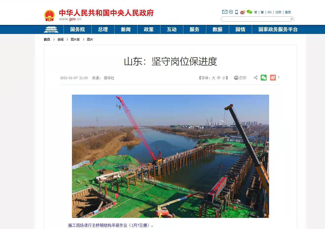 1月7日,聊城市黑龍江路跨徒駭河大橋,在-19℃嚴(yán)寒中進(jìn)行了首次鋼結(jié)構(gòu)主縱梁桿件吊裝。當(dāng)晚,國務(wù)院官網(wǎng)點贊中建八一建設(shè)者不畏嚴(yán)寒、堅守崗位保證重點民生工程履約推進(jìn)的事跡。