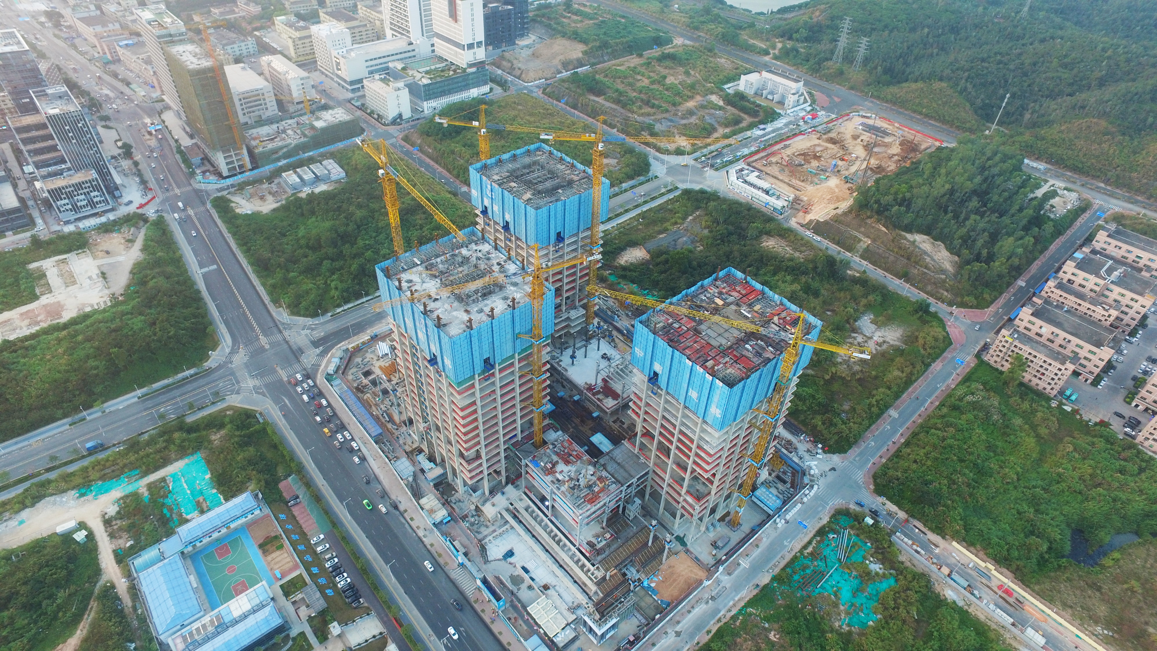 中廣核工程大廈工程項(xiàng)目,總建筑面積32.8萬㎡,由A、B、C三棟塔樓及回字形群樓組成。項(xiàng)目建成后,將成為中廣核工程有限公司總部大廈和研發(fā)實(shí)驗(yàn)基地。(陳洪磊)