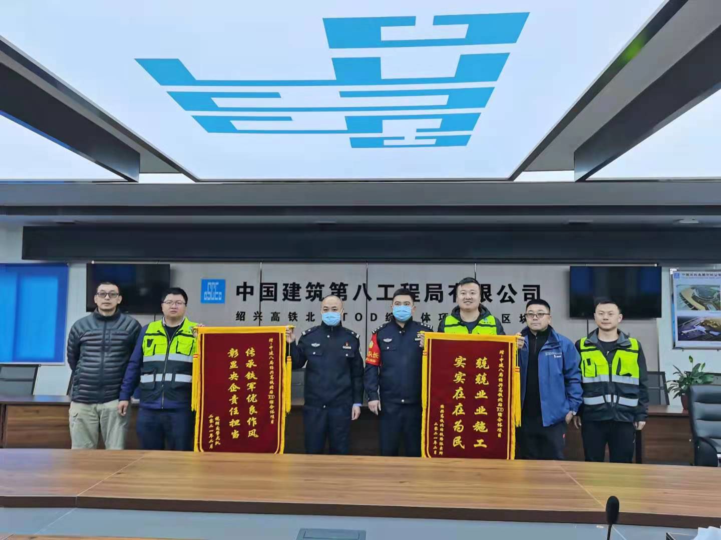 兩面錦旗充分體現(xiàn)了交通管理部門與鐵路派出所對紹興北站TOD綜合體項(xiàng)目高標(biāo)準(zhǔn)施工管理的肯定,彰顯了中建八一作為央企的責(zé)任擔(dān)當(dāng)。