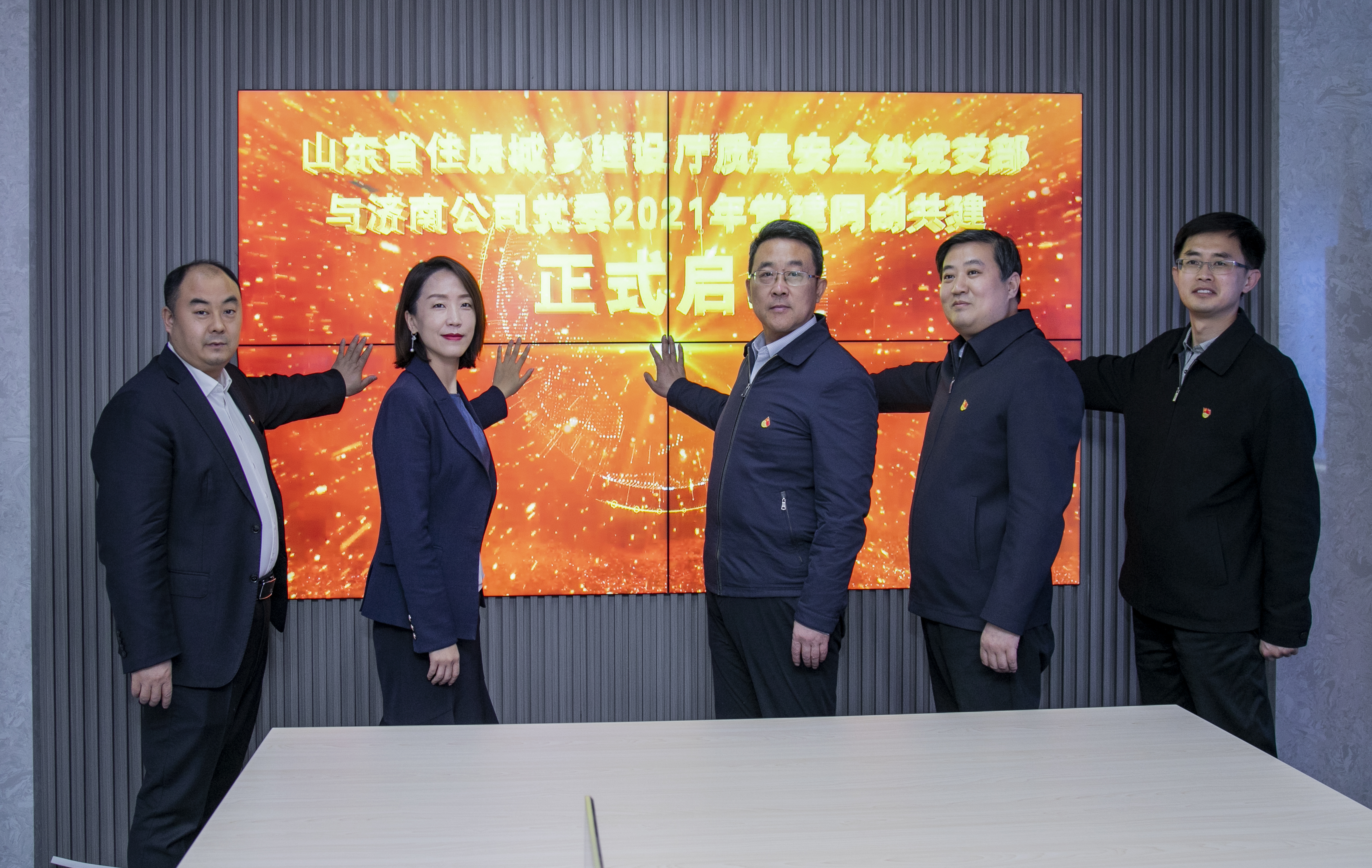 3月25日,在濟(jì)南中央商務(wù)區(qū)360米超高層項(xiàng)目,山東省住房和城鄉(xiāng)建設(shè)廳質(zhì)量安全處黨支部與中建八局一公司黨委開展2021年度黨建同創(chuàng)共建啟動(dòng)儀式暨“我為群眾辦實(shí)事——與工友話安全”活動(dòng)。