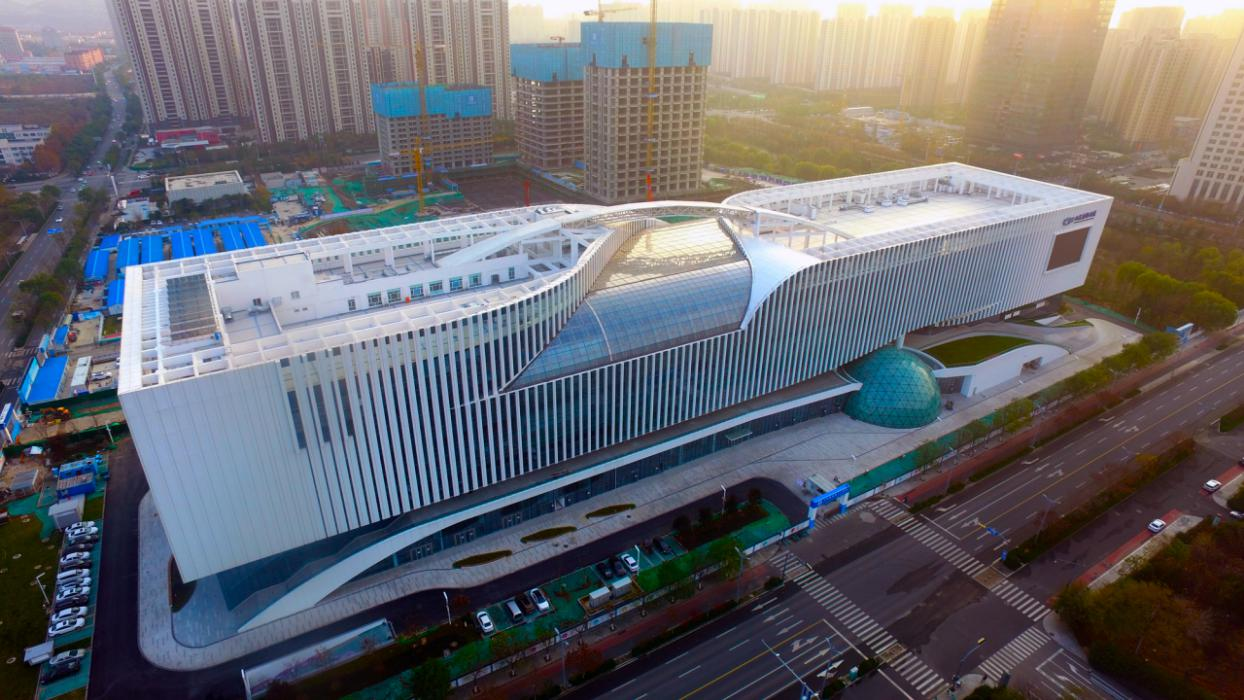 山東省科技館新館項目,位于濟南市槐蔭區(qū),總建筑面積8萬㎡,擁有山東省最大的球幕影院,也是目前國內(nèi)最大的純混凝土單層薄殼殼體結構建筑。