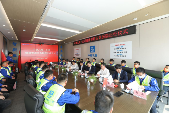 3月5日上午,中建八一中央援建香港應(yīng)急醫(yī)院項目建設(shè)者出征儀式在深圳舉行。本次援建突擊隊由公司黨委副書記、總經(jīng)理?;瘧棑沃笓]長,副總經(jīng)理寧文忠為副指揮長,突擊隊共83人,其中黨員41人,現(xiàn)場前線員工58人,黨員24人,黨員先鋒模范作用得到充分彰顯。