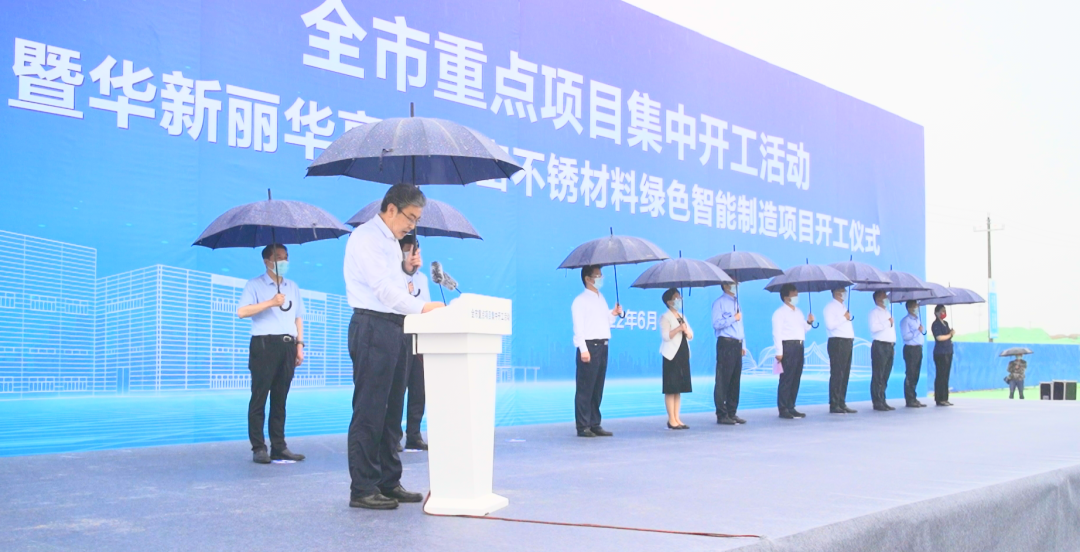 6月14日,煙臺市重點項目集中開工儀式在中建八局一公司承建的華新麗華高端精密不銹材料綠色智能制造項目舉行。山東省委常委、煙臺市委書記傅明先,煙臺市委副書記、市長鄭德雁出席儀式并講話。