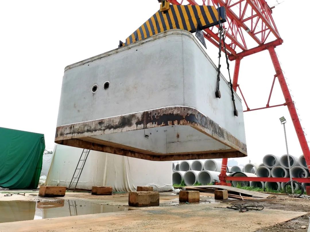 為緩解北京城市副中心交通壓力,項目選用非開挖矩形頂管方式施工,土壓平衡矩形頂管機——“建通號”,利用額定推力4000T的主頂油缸,完成126米頂管任務,刀頭運轉可實現毫秒級控制,一邊向前推進、一邊拼裝預制管節(jié),完成矩形頂管貫通。