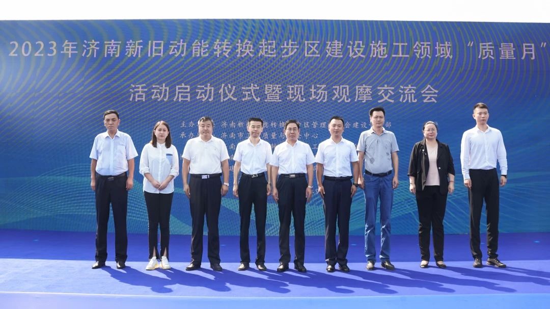 9月8日,2023年濟南新舊動能轉(zhuǎn)換起步區(qū)建設(shè)施工領(lǐng)域“質(zhì)量月”活動啟動儀式暨現(xiàn)場觀摩交流會在中建八局一公司承建的黃河體育中心專業(yè)足球場項目舉行。濟南市住房和城鄉(xiāng)建設(shè)局、起步區(qū)管委會、濟南城建集團、中建八局一公司及各街道辦事處、建設(shè)、施工、監(jiān)理(全詢)單位共200余人參與。