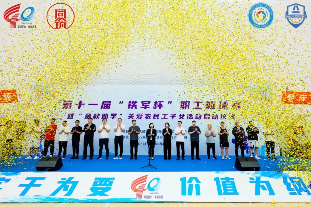 9月22日,中建八局一公司第十一屆“鐵軍杯”職工籃球賽暨“金秋助學”關愛農(nóng)民工子女活動啟動儀式在濟南鳳凰山·沃克體育公園舉行,濟南市總工會黨組成員、副主席申世平,中建八局一公司副總經(jīng)理霍文濤,黨委副書記、工會主席聶麗,工會工作部、濟南公司相關負責人及17支參賽隊伍參加。