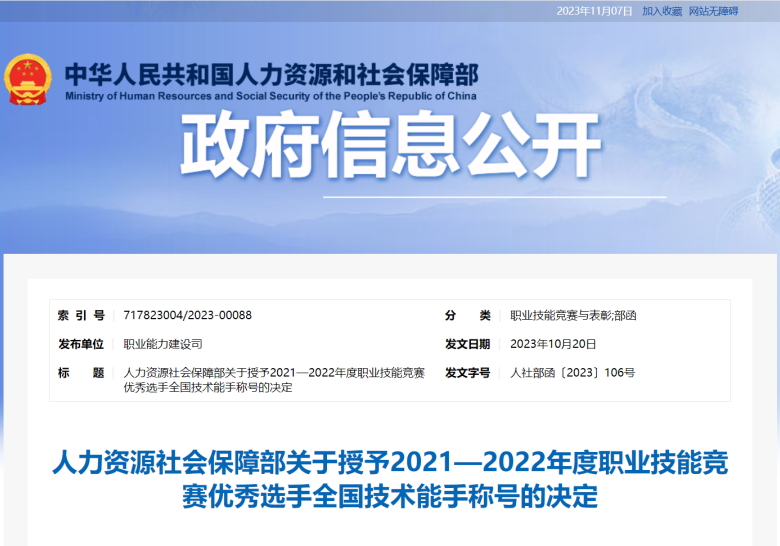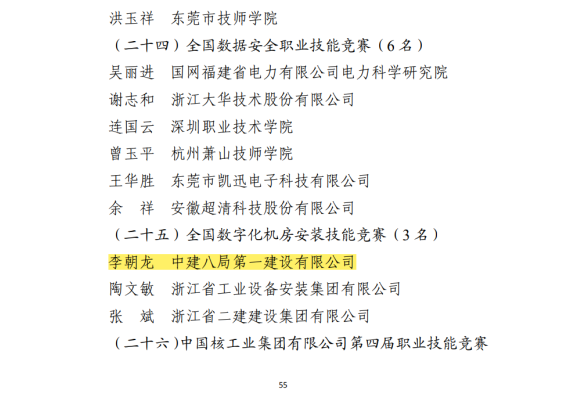 近日,國家人力資源和社會保障部公布了《關于授予2021—2022年度職業(yè)技能競賽優(yōu)秀選手全國技術能手稱號的決定》,中建八局一公司員工李朝龍榮獲“全國技術能手”。“全國技術能手”是我國設立的優(yōu)秀技術工人榮譽稱號,是國家技術人才評選表彰制度的重要組成部分。