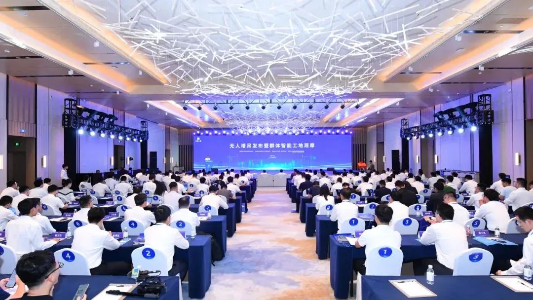 會上,中建八局無人塔吊正式發(fā)布,并進行了群體智能示范工地揭牌。