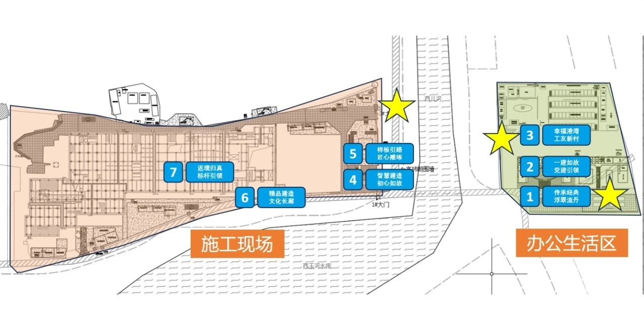 項目堅持黨建引領(lǐng),打造“建證·一建如故”黨建工作品牌,融合故宮文化元素,建設(shè)仿古花園式辦公區(qū),設(shè)置黨員活動室、青年之家職工書屋、工友幸福村等載體,打造豐富項目隊伍組織和文化生活的重要實踐場所,助力項目高效建造、完美履約。