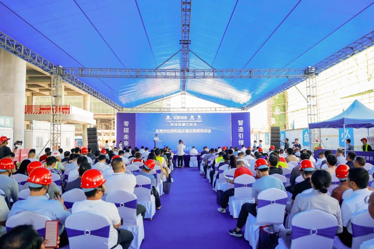 東莞市住房和城鄉(xiāng)建設(shè)局總工程師曹偉、三級(jí)調(diào)研員雍春亭,南城街道相關(guān)負(fù)責(zé)人;廣東省土木建筑學(xué)會(huì)理事長徐天平,中國工程院院士、深圳市建筑設(shè)計(jì)研究總院有限公司總建筑師孟建民,東莞市萬科房地產(chǎn)有限公司副總經(jīng)理劉健華;中建八局華南分局總工程師方順江,中建八局一公司副總經(jīng)理、總工程師谷力,華南公司相關(guān)負(fù)責(zé)人,各參建單位代表,以及廣東省、東莞市建筑行業(yè)相關(guān)部門、相關(guān)企業(yè)負(fù)責(zé)人等500余人現(xiàn)場(chǎng)參加,線上觀摩人數(shù)5000+。