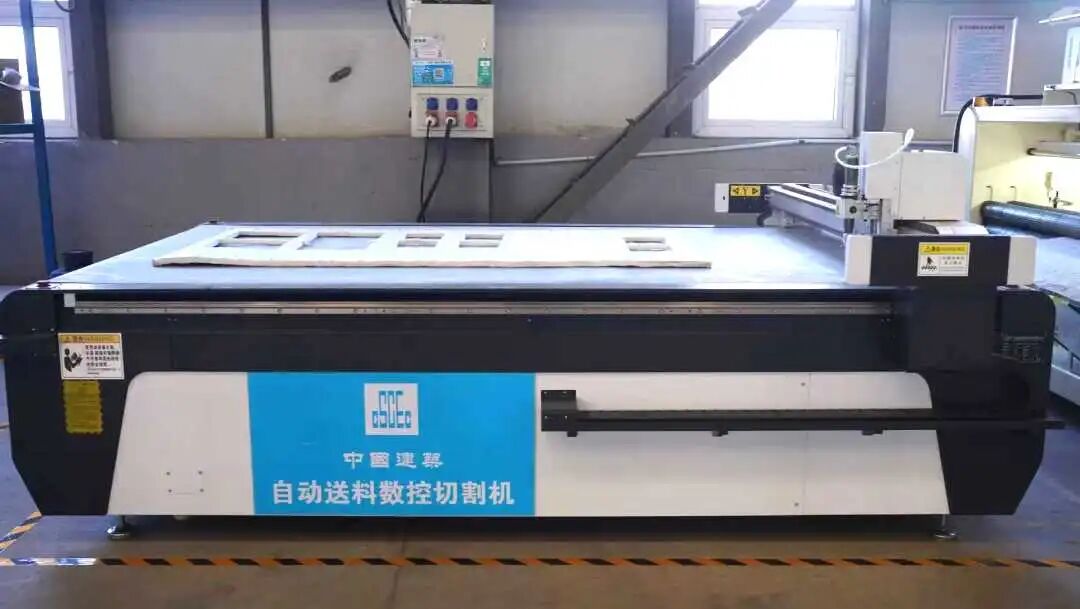 隨后,利用自動送料數(shù)控切割機將縫制完成的氣凝膠氈精準裁切后,與鋁單板通過專用粘結(jié)劑粘接,完成初步復(fù)合定位。
