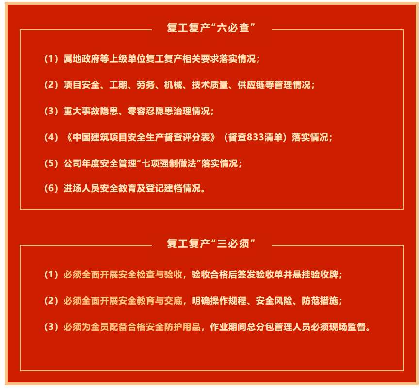 公司2026年春節(jié)后復工安全生產大檢查啟動,嚴守底線、不越紅線、平穩(wěn)復工,安全生產“六必查”“三必須”請查收。
