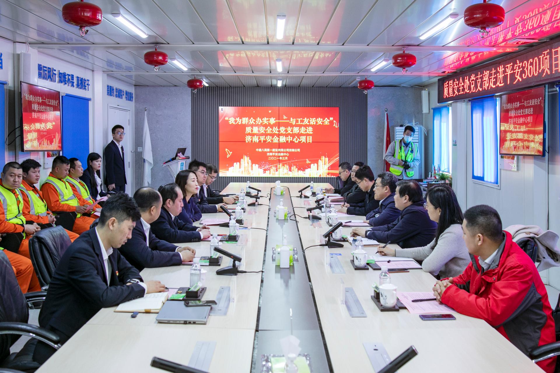 3月25日,在濟(jì)南中央商務(wù)區(qū)360米超高層項(xiàng)目,山東省住房和城鄉(xiāng)建設(shè)廳質(zhì)量安全處黨支部與中建八局一公司黨委開展2021年度黨建同創(chuàng)共建啟動(dòng)儀式暨“我為群眾辦實(shí)事——與工友話安全”活動(dòng)。