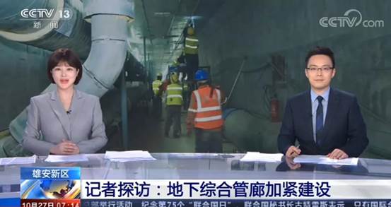 10月27日,CCTV-13《朝聞天下》、CCTV-13《新聞直播間》,CCTV-2《天下財經(jīng)》欄目以《雄安新區(qū) 記者探訪:地下綜合管廊加緊建設》為題,連續(xù)報道了中建八局一公司參與建設的雄安站樞紐片區(qū)市政道路、綜合管廊、排水管網(wǎng)系統(tǒng)(一期)工程,指出地下綜合管廊建設是執(zhí)行“先地下后地上”方案,推動雄安基礎設施建設的重要內容。