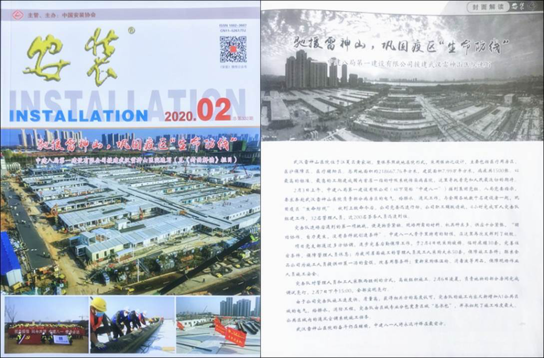 公司援建武漢雷神山醫(yī)院事跡登上《安裝》雜志封面