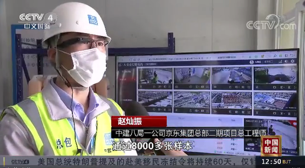 4月22日,CCTV4《中國新聞》欄目采訪報(bào)道全國首個(gè)5G智慧工地——公司京東集團(tuán)總部二期2號(hào)樓項(xiàng)目C座項(xiàng)目,深度揭秘5G智慧工地建設(shè)成果。
