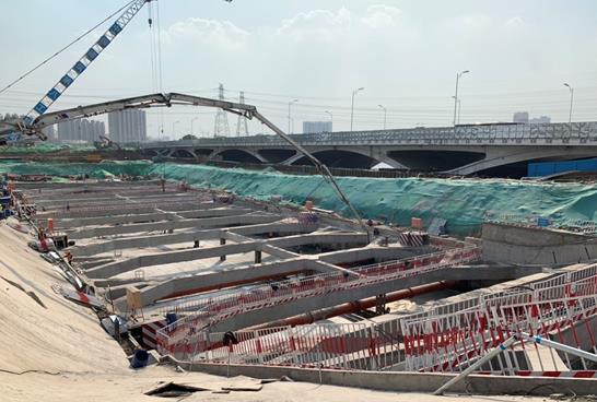 5月10日下午,伴隨著最后一車混凝土澆筑完成,廣渠路東延項目北運河工程東岸主體結(jié)構(gòu)順利封頂。