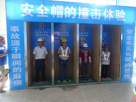 在項目安全總監(jiān)朱廣帝的代領(lǐng)下,農(nóng)民工來到體驗館,分別進(jìn)行了“安全帶使用體驗”、“滅火器使用安全體驗”、“綜合用電體驗”、“移動式操作平臺安全體驗”、“安全帽撞擊體驗”、“洞口墜落安全體驗”、“平衡木安全體驗”、“安全防護(hù)欄桿的倒塌體驗”等多個項目的體驗。體驗結(jié)束后,項目管理人員還采用電視講解的方式,通過多起安全事故案例,讓農(nóng)民工深切地體會到安全作業(yè)的重要性,自覺學(xué)習(xí)、掌握安全生產(chǎn)教育的知識。