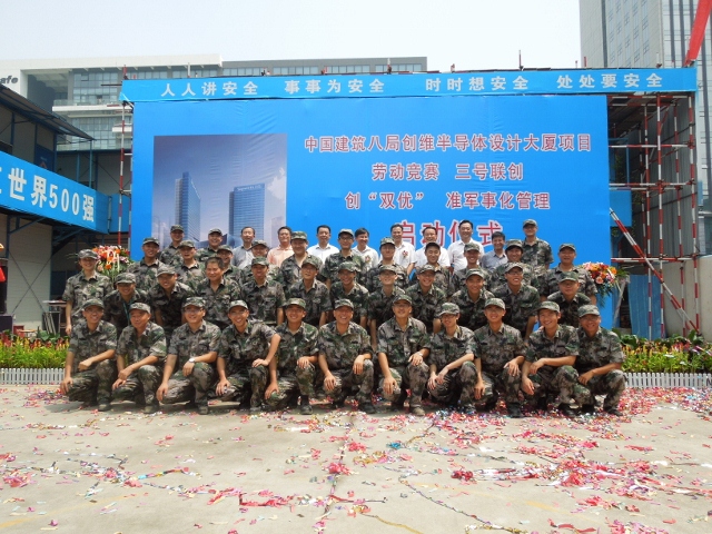 ,對(duì)八局立足深圳、開拓珠三角市場(chǎng)具有重要意義。工程于2012年2月開工,計(jì)劃工期18個(gè)月。為保證項(xiàng)目施工順利進(jìn)行,我局決定在該項(xiàng)目中開展黨員先鋒號(hào)、工人先鋒號(hào)、青年文明號(hào)“三號(hào)聯(lián)創(chuàng)”,和“工程優(yōu)質(zhì)、干部?jī)?yōu)秀”創(chuàng)“雙優(yōu)”暨項(xiàng)目準(zhǔn)軍事化管理試點(diǎn)活動(dòng)。該活動(dòng)將在施工中比技術(shù),賽工程質(zhì)量;比進(jìn)度,賽計(jì)劃完成;比守紀(jì),賽安全生產(chǎn);比作風(fēng),賽文明施工;比節(jié)約,賽降低消耗;比風(fēng)格,賽團(tuán)結(jié)協(xié)作。