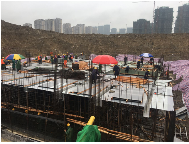 售樓部主體施工期間,項(xiàng)目部編制了詳細(xì)的施工進(jìn)度計(jì)劃,計(jì)劃精確到小時(shí),24小時(shí)兩班輪流不間斷施工,保證了地下室兩層和地上一層主體結(jié)構(gòu)在20天內(nèi)的完成。