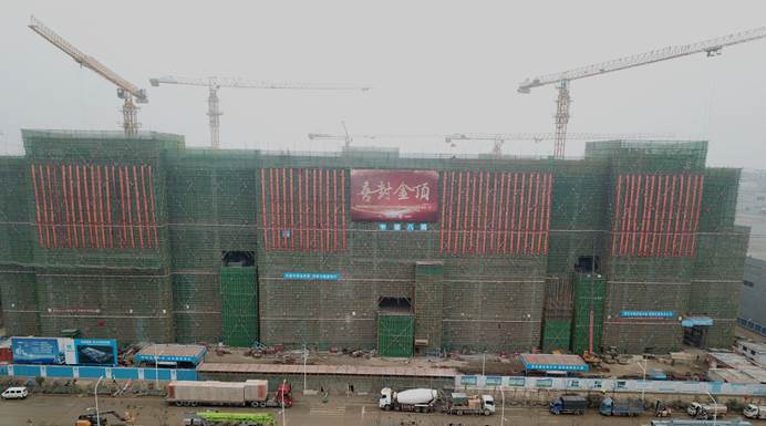 公司武漢華星光電項(xiàng)目MOD廠房主體結(jié)構(gòu)喜封金頂