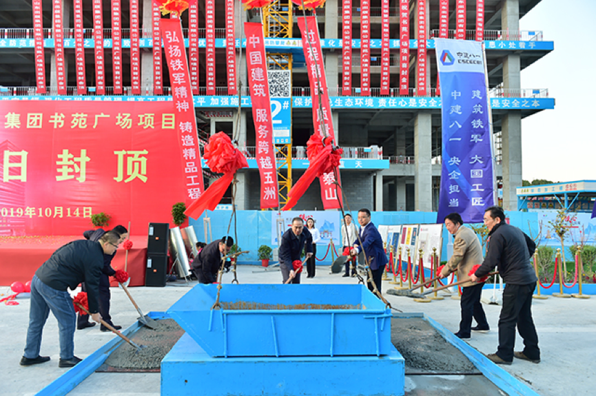 10月14日,一公司山東出版集團(tuán)圖書(shū)展示樓項(xiàng)目喜迎封頂。山東新源文化置業(yè)有限公司董事長(zhǎng)李濤、總經(jīng)理孫明,濟(jì)南建設(shè)監(jiān)理有限公司董事長(zhǎng)林峯,山東意匠建筑設(shè)計(jì)有限公司副院長(zhǎng)劉祥春,一公司黨委書(shū)記、董事長(zhǎng)董文祥,濟(jì)南公司總經(jīng)理霍文濤共同出席了封頂儀式。