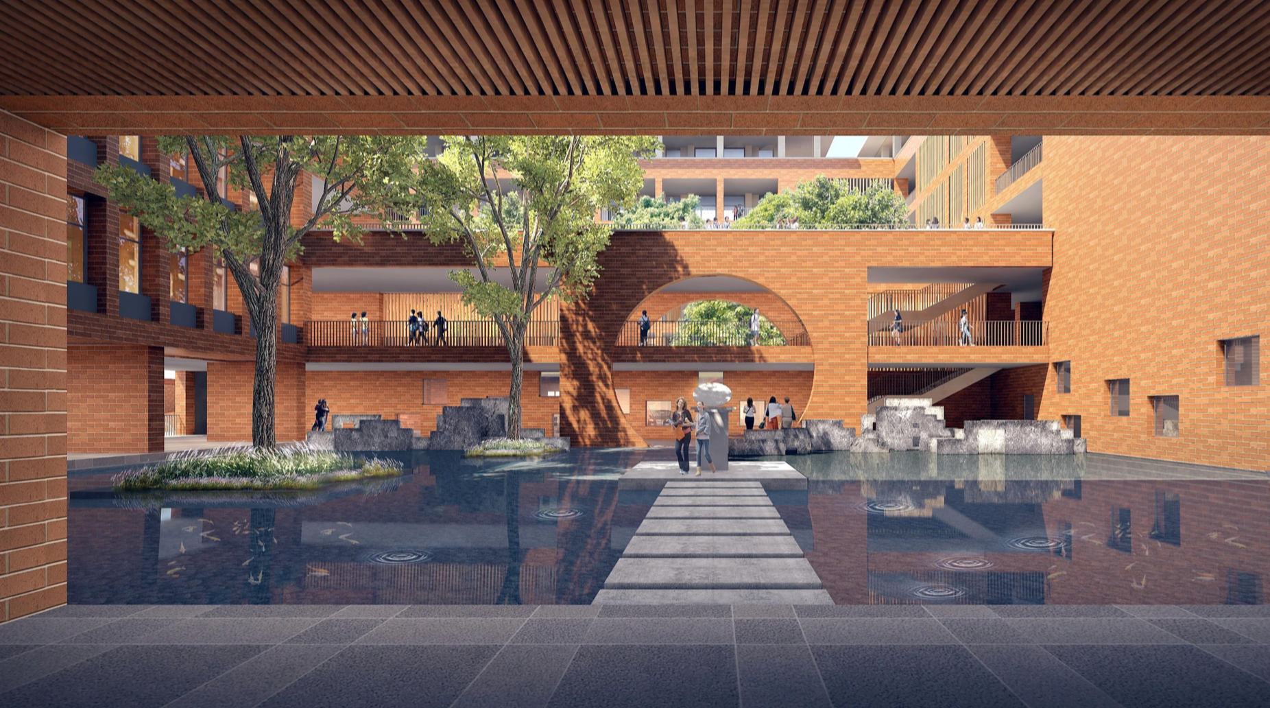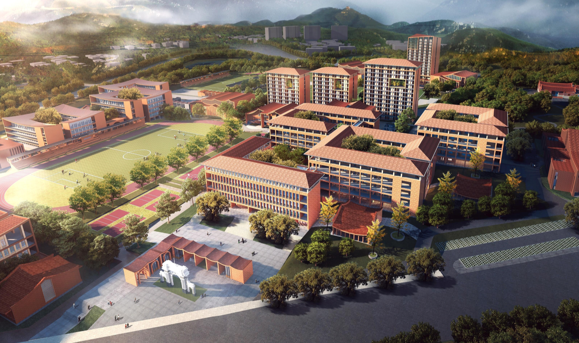 文教園二期用地位于一期用地的北側(cè),包括一棟培訓(xùn)中心、室內(nèi)運(yùn)動(dòng)館、運(yùn)動(dòng)場(chǎng)、食堂三棟高層學(xué)生宿舍樓,培訓(xùn)中心、禮堂及教師公寓,園區(qū)規(guī)劃整體上采用院落式布局。不同建筑依據(jù)功能、體量依山就勢(shì),布置在不同的山地平臺(tái),利用山地步道、綠坡、空中連廊等元素將建筑進(jìn)行串聯(lián),形成極具山地建筑特色的園區(qū)景觀,實(shí)現(xiàn)與環(huán)境和諧共存。(呂良)