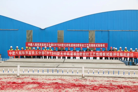 此前,公司二標(biāo)段五分部借助先進(jìn)底座板施工工藝和自密實(shí)混凝土灌注工藝,在首個(gè)CRTSlll型板式無砟軌道工藝性揭板試驗(yàn)中7次成功,打破中國鐵道科學(xué)研究院揭板試驗(yàn)記錄,為無砟軌道施工奠定良好基礎(chǔ)。
