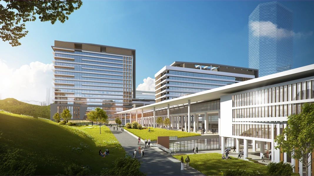 濟南市中心醫(yī)院(東院區(qū))位于濟南高新區(qū)共分為兩期建設(shè),是濟南市衛(wèi)生健康行業(yè)貫徹“東強”戰(zhàn)略的重要落子,將滿足濟南東部地區(qū)40萬居民醫(yī)療衛(wèi)生保健需求。其中,一期工程已于2022年9月28日正式啟用,二期項目建筑面積20.58萬平方米,建設(shè)內(nèi)容包括辦公綜合樓、門診醫(yī)技綜合樓及2號病房樓,規(guī)劃床位數(shù)1065張,設(shè)有普通手術(shù)室28間、機器人手術(shù)室2間、新增機動車停車位1660個,項目當前處于主體施工階段,預(yù)計2025年竣工。