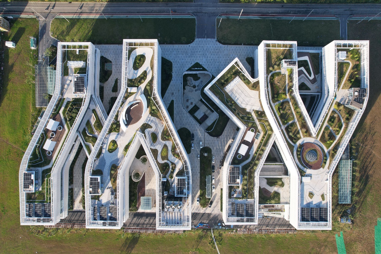 項(xiàng)目位于合肥市長豐縣,總建筑面積9.5萬平方米,建成后將實(shí)現(xiàn)人工智能與農(nóng)學(xué)深度融合,帶動(dòng)一批智慧農(nóng)業(yè)高科技企業(yè)落戶合肥,是合肥市未來助力鄉(xiāng)村振興、農(nóng)業(yè)提質(zhì)增效的重點(diǎn)工程,為更好滿足科研工作的平臺(tái)協(xié)作需求,項(xiàng)目摒棄傳統(tǒng)陣列式空間布局,堅(jiān)持突出生態(tài)、交互和科研功能,提出“順應(yīng)自然”“多級聯(lián)通”和“社群聚合”的設(shè)計(jì)策略。采用多層建筑的形式將科研辦公空間平層化,形成多組具有圍合性的小尺度庭院,大幅提高辦公空間利用率的同時(shí),營造交流互動(dòng)的辦公環(huán)境,搭建起智能生態(tài)的農(nóng)業(yè)科研空間。