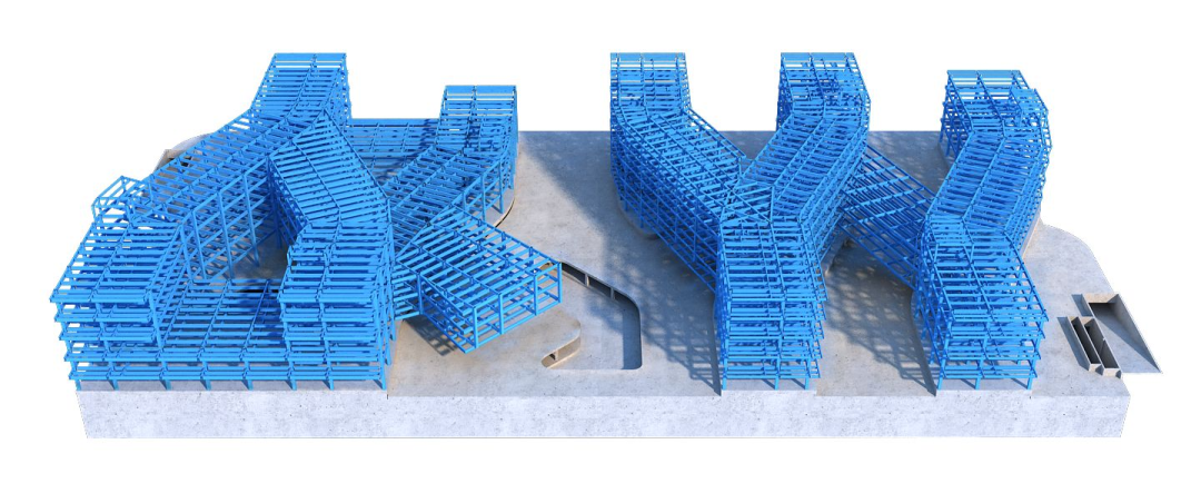 項(xiàng)目外立面采用玻璃幕墻+穿孔鋁板的雙層幕墻系統(tǒng),層次分明、美觀大氣、園區(qū)園林綠化、鋪裝園路、園藝小品、異型廊架、眼瞼雕塑采用精細(xì)化布局,營造舒適、便捷、高效的辦公環(huán)境。項(xiàng)目地上4棟樓均為鋼框架結(jié)構(gòu),總用鋼量達(dá)7800噸,其中,城市展覽館V型柱懸挑區(qū)最大跨度達(dá)8米,創(chuàng)新研究院與實(shí)驗(yàn)樓連廊結(jié)構(gòu)最大跨度達(dá)30米,施工難度較大,項(xiàng)目團(tuán)隊(duì)充分發(fā)揮總承包管理優(yōu)勢,引進(jìn)胎架支撐、圓管支撐、雙機(jī)抬吊、BIM綜合應(yīng)用等多項(xiàng)技術(shù),提高質(zhì)量管理整體水平,助力項(xiàng)目保障精益建造、高品質(zhì)履約。
