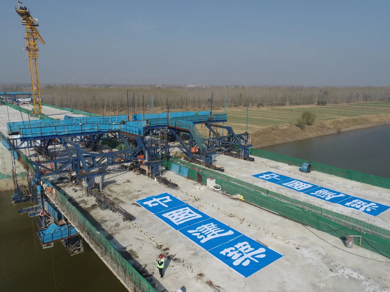 徒駭河特大橋全長1248.5米,共9聯(lián),單幅橋?qū)?6.5米,主跨長358.5米,最大跨徑165米,主橋采用單箱單室變截面,預(yù)應(yīng)力混凝土連續(xù)梁結(jié)構(gòu)形式,是徒駭河跨徑最大連續(xù)剛構(gòu)現(xiàn)澆梁。