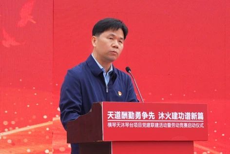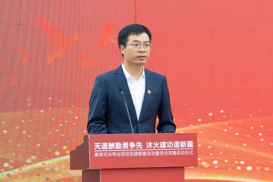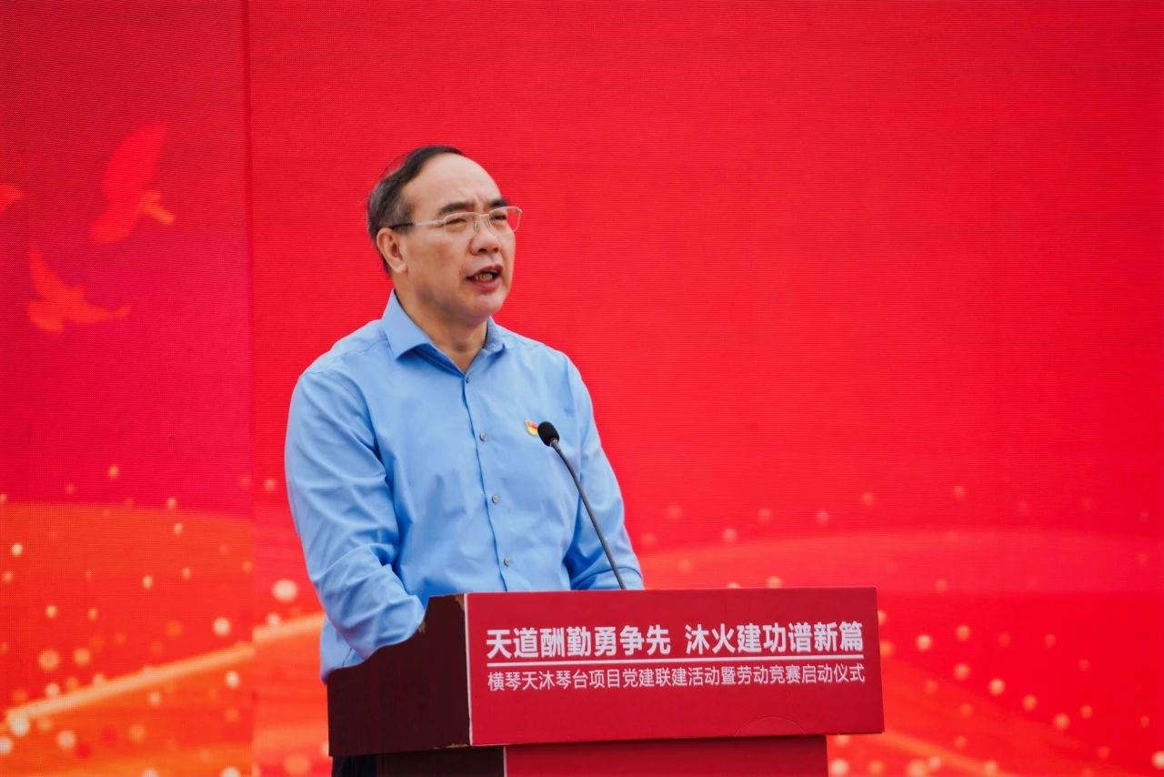 3月28日,橫琴天沐琴臺項(xiàng)目舉辦黨建聯(lián)建暨勞動競賽啟動儀式,按下項(xiàng)目建設(shè)“快進(jìn)鍵”。廣東省委橫琴工委黨建工作處處長童鐵丁,珠海市總工會黨組書記、常務(wù)副主席唐尚洪,橫琴粵澳深度合作區(qū)行政事務(wù)局副局長張文驥,城市規(guī)劃和建設(shè)局住房保障處處長鄭慧仙,珠海大橫琴集團(tuán)有限公司副總經(jīng)理祝杰,珠海大橫琴置業(yè)有限公司黨總支書記、董事長唐文彬,中建八局華南分局黨委書記郭青松,中建八局一公司華南公司執(zhí)行總經(jīng)理、工會主席張志剛,以及各參建單位代表、工友代表參加活動。